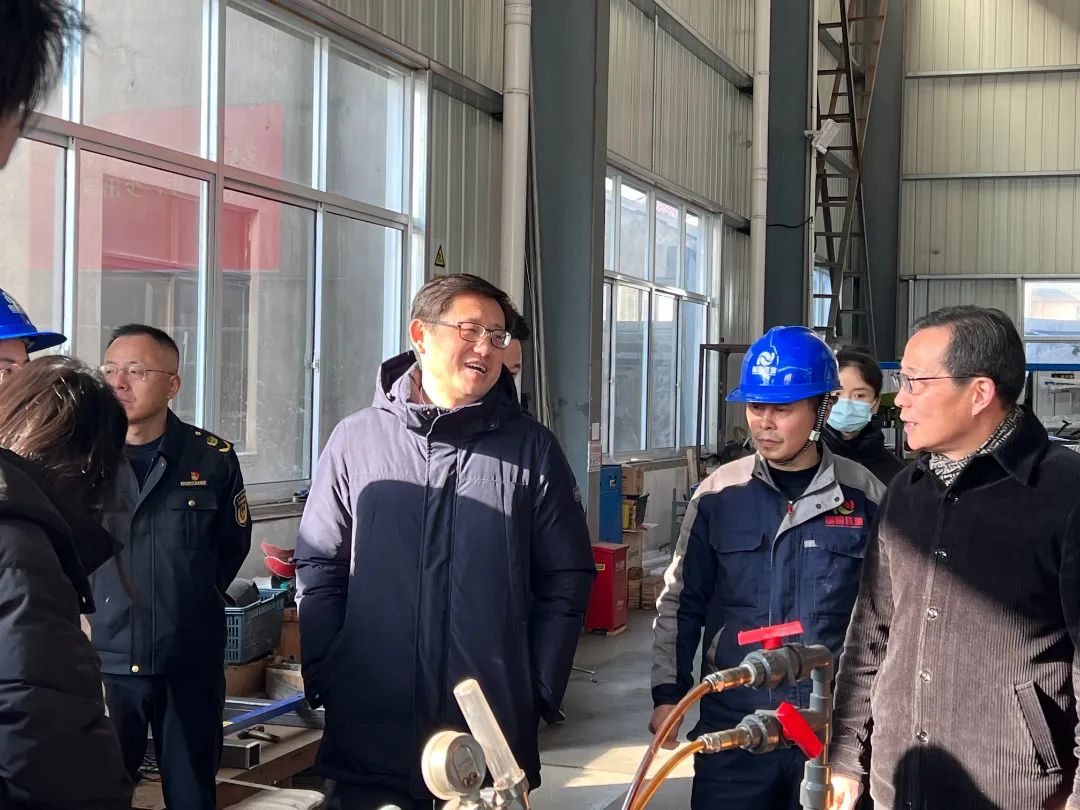 一號(hào)組裝車間參觀完畢后考察組一行來(lái)到了朗盼的二號(hào)和三號(hào)車間進(jìn)行參觀。董事長(zhǎng)鮑偉東著重匯報(bào)了我司作為高新技術(shù)企業(yè),積極響應(yīng)國(guó)家綠色低碳號(hào)召,推動(dòng)城市工業(yè)廢水零排放,積極承擔(dān)起作為環(huán)保企業(yè)社會(huì)責(zé)任和目標(biāo)??疾炱陂g,董事長(zhǎng)鮑偉東還結(jié)合實(shí)體產(chǎn)品展示,對(duì)公司安全車間建設(shè)、數(shù)字化設(shè)備和低溫真空蒸發(fā)器產(chǎn)品等進(jìn)行了詳細(xì)介紹。