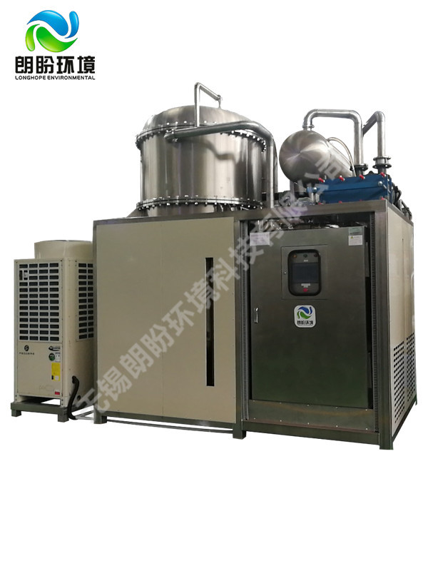 低溫?zé)岜谜舭l(fā)器由無錫朗盼環(huán)境科技有限公司主持研發(fā)生產(chǎn),是其全系列工業(yè)廢水處理技術(shù)產(chǎn)品中及其重要的一環(huán)。 V-HP系列真空熱泵蒸發(fā)系統(tǒng),獨(dú)特地采用高效的壓縮式熱泵技術(shù),結(jié)合合適的真空運(yùn)行區(qū)間,使得對(duì)于各種工業(yè)廢水的蒸發(fā)濃縮處理具有了廣泛的適應(yīng)性,并且使得處理能耗大幅度的下降,不但讓各種廢水的濃縮減量在技術(shù)上更加合理,更重要的是讓應(yīng)用用戶在經(jīng)濟(jì)上樂于接受。 V-HP系列真空熱泵蒸發(fā)系統(tǒng),標(biāo)準(zhǔn)工況下其主機(jī)能效比達(dá)到9以上,遠(yuǎn)遠(yuǎn)的超過了多效蒸發(fā)器(一效、二效、三效、四效能效比分別為0.9,1.7,2.4,3.0)擴(kuò)容濃度蒸發(fā)器(能效比為4.2)。更為重要的是,由于其采用與以往不同的技術(shù)組織,其全過程運(yùn)行溫度低于40℃,因而在用于工業(yè)廢水場(chǎng)合并伴有熱敏性物質(zhì)回收的應(yīng)用中顯得非常合適。同時(shí)因?yàn)樵撓到y(tǒng)構(gòu)成中優(yōu)化了的熱泵系統(tǒng)具有足夠?qū)挿旱墓r適應(yīng)性,在針對(duì)廢水液中常常遇到的蒸發(fā)濃縮過程中,沸點(diǎn)升高的門檻有著自適應(yīng)的能力,并且依然能保持其很高的能效比。(例對(duì)NaOH 25%的溶液,其主機(jī)能效比依然可達(dá)6.5)